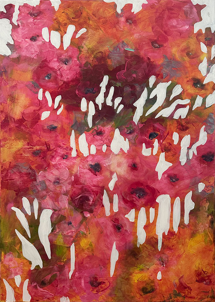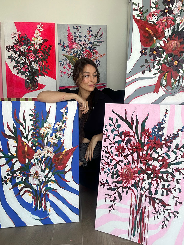 I am a painter working with floral forms as a language to explore human emotions, fragility and connection. Through color and contrast, I reflect on inner experience, memory and the subtle transformations that shape who we are.